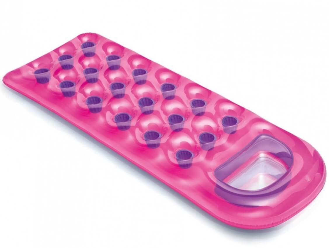 Met dit luchtbed kunt u uw beker op diverse plaatsen zetten. U kunt op dit luchtbed heerlijk relaxen. Het luchtbed is gemaakt van stevig vinyl, bestaat uit 2 luchtkamers en is tevens voorzien van een raampje. Daarnaast wordt het luchtbed geleverd inclusief een reparatiesetje en is het verkrijgbaar in twee kleuren (blauw en roze).