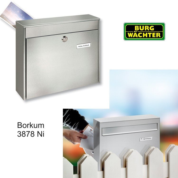 Compacte en robuuste Burg Wächter brievenbus type Borkum. Deze brievenbus is gemaakt van krasvast gelakt RVS en kan zowel binnen- als buitenhuis gebruikt worden. De uitnameklep is voorzien van een openingsstop zodat uw post niet valt bij het openen van de brievenbus. De post kan aan de achterzijde uit de bus gehaald worden. Handig om binnen te monteren of tegen een hekwerk.