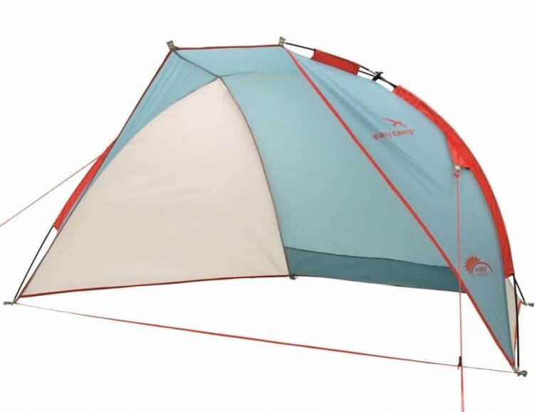 De Easy Camp Bay is een combinatie van een windscherm en strandtentje. Het biedt beschutting tegen de wind, schaduw en, dankzij de UV beschermingsfactor +50, bescherming tegen schadelijke zonnestralen. Het is tevens een handige opbergplek voor je spullen en zorgt voor wat extra privacy op het strand. Het windscherm is eenvoudig op te zetten en gemakkelijk overal mee naar toe te nemen dankzij zijn lichte gewicht en de handige draagtas die meegeleverd wordt.