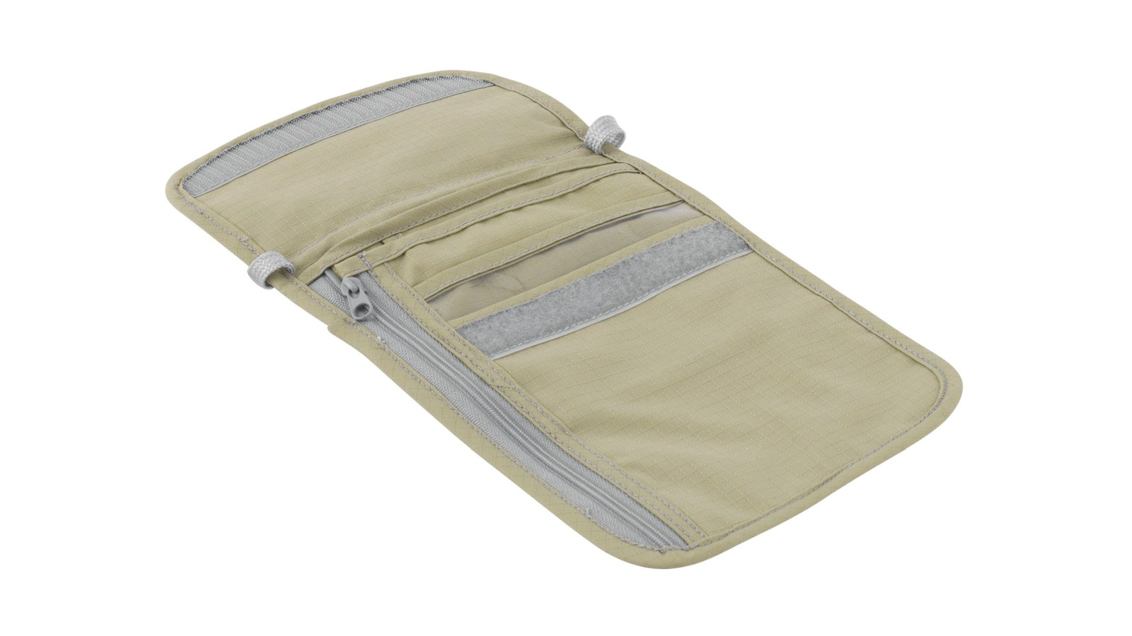Handig opbergtasje van het merk Easy Camp. Het tasje heeft twee compartimenten met een ritssluiting en bestaat uit vier vakken. Door de beige kleur kan het vrijwel onzichtbaar worden gedragen en dankzij de geborstelde stof zit het tasje comfortabel op de huid. Ideaal om geld, sleutels, paspoorten in op te bergen.