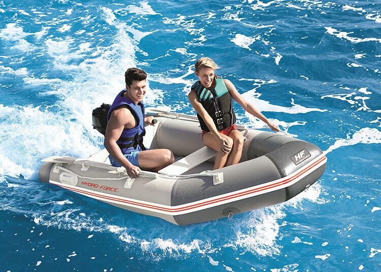De Hydro Force Caspian Pro is een opblaasbare sportboot die perfect is voor de wat langere vaarexcursies en hogere snelheden met een buitenboordmotor (niet inbegrepen). In de boot passen maximaal 3 volwassenen en 1 kind. Hij kan een gewicht van 480 kg aan en een buitenboordmotor van 10 pk. De stevige vloerbodem en bankjes zorgen voor meer stevigheid, stabiliteit en comfort. De sterke buitenkant van PVC en de stootlijst beschermen de boot tegen invloeden van zout water, zonlicht, benzine, olie en scherpe objecten.