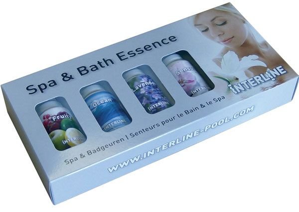 Interline bevat een luxe serie Spa-geuren, deze geuren geven een heerlijk geur aan uw Spa. In deze luxe serie Spa geuren zitten 4 heerlijke geuren: Fruity, Ocean, Lavendel en Sensual. Deze verpakking is ideaal om alle geuren uit te testen in uw SPA. Dan ervaart u de heerlijke geuren.