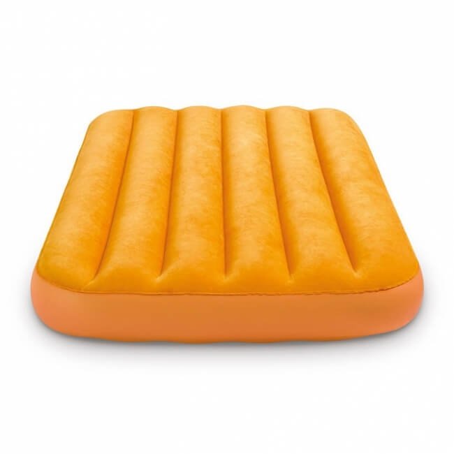 Kinderluchtbed, geschikt voor kinderen van 3 tot 10 jaar. Het luchtbed is bekleed met een fluweelzachte geflockte laag, voor extra comfort, en verkrijgbaar in twee vrolijke kleuren: blauw en oranje. Kijk ook eens naar de rest van het aanbod opblaasbaar speelgoed zwembad.