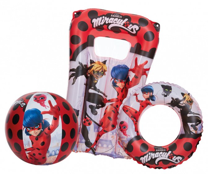 Een middagje naar het zwembad is compleet met deze set van Miraculous! Een strandbal, zwemband en luchtbed: voor ieder wat wils.
