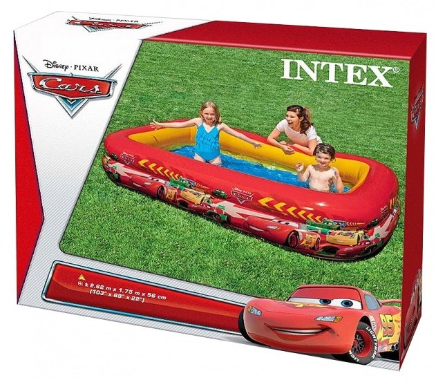 Het zwembad heeft leuke afbeeldingen op de zijkanten van al jouw Cars vriendjes.