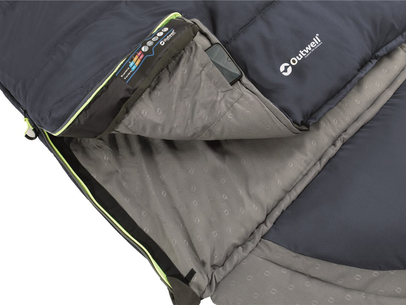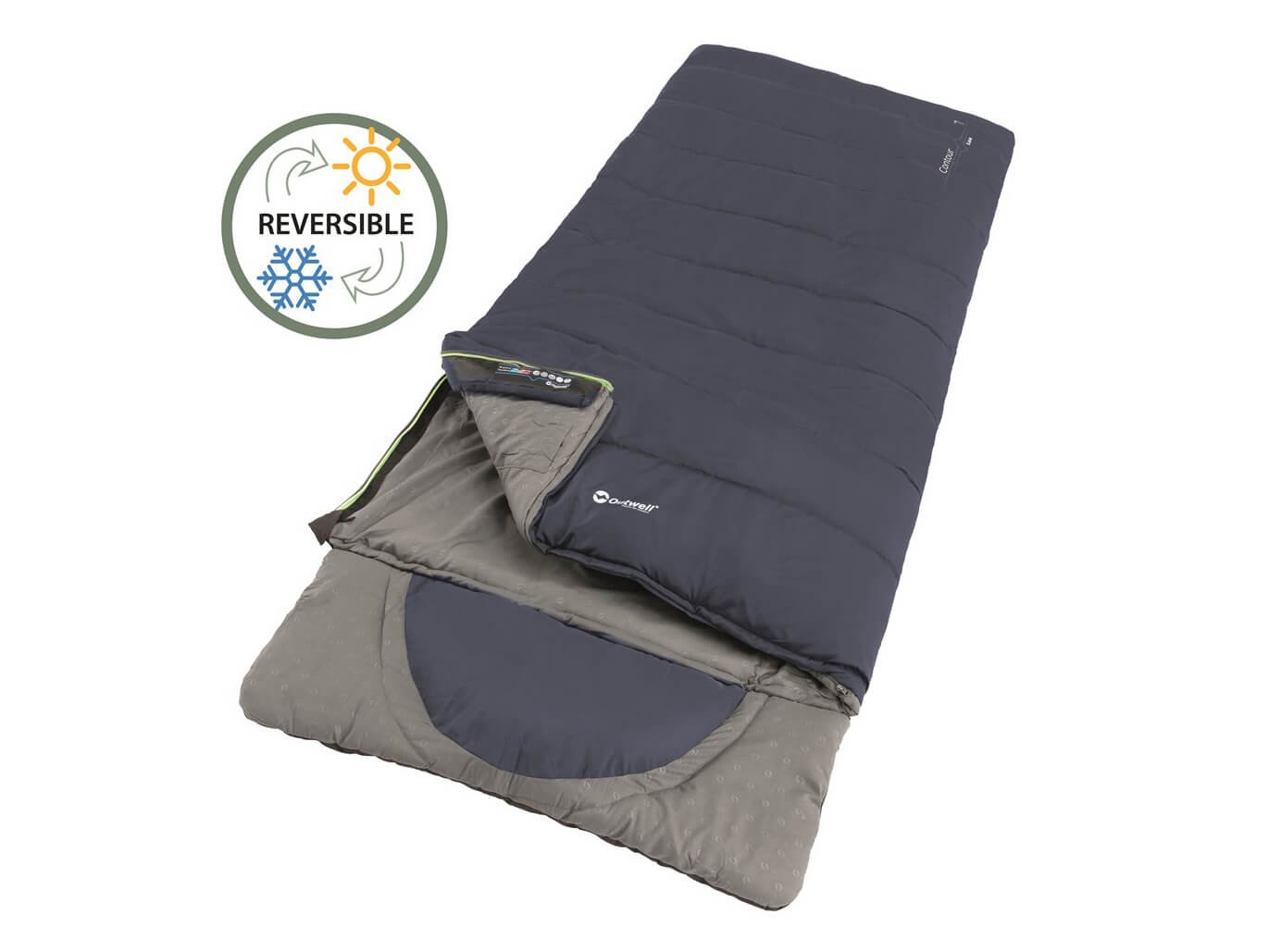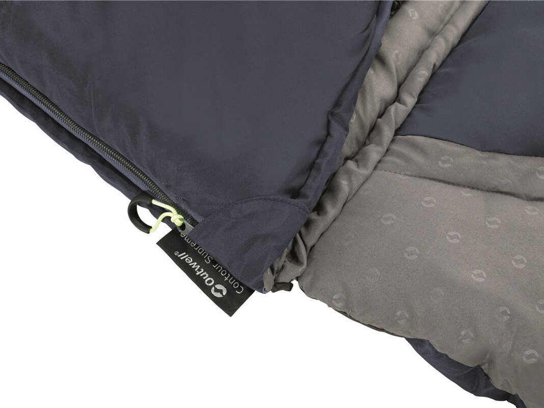 De Outwell Contour is een comfortabele slaapzak die geschikt is voor gebruik in 3 seizoenen, van de late lente tot de vroege herfst, tot temperaturen net boven het vriespunt. De slaapzak is gevuld met twee lagen Isofill isolatiemateriaal en is omkeerbaar, met een koele en warme kant. Je kunt hier tussen wisselen door de slaapzak binnenstebuiten te draaien. De comfortwaarde is voor mannen -3°C, voor vrouwen 3°C met de koele kant, en 11°C en 15°C met de warme kant. Aan de slaapzak zit een praktisch, zacht kussen vast, al is dit er eventueel ook af te ritsen. De slaapzak is geheel open te ritsen tot een tweepersoons deken en twee slaapzakken kunnen aan elkaar worden geritst tot een grote tweepersoons slaapzak. Binnenin de slaapzak zit een handig opbergvakje en bevestigingslussen voor een mogelijke binnenlaken. De slaapzak is geschikt voor mensen tot 1,90 m en wordt geleverd met een compressietas.