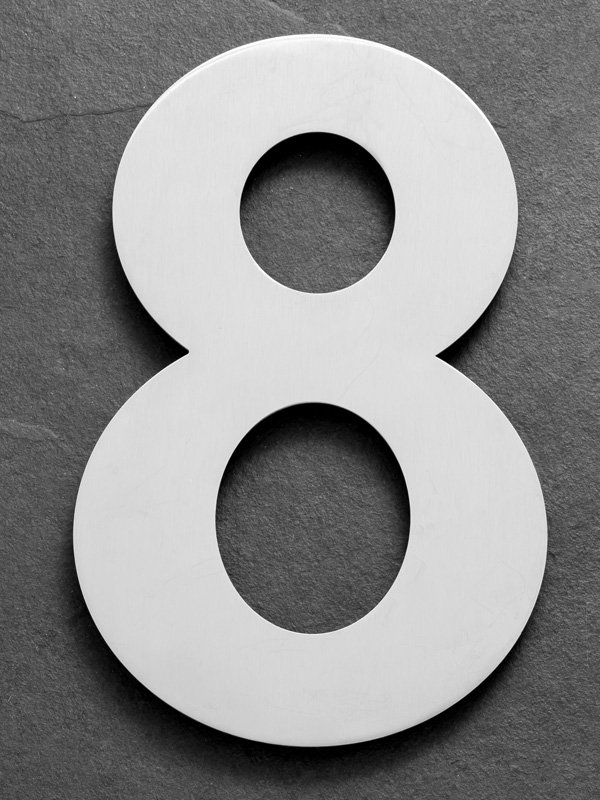 RVS huisnummer 8. Het huisnummer is 25 cm hoog en is 17 cm breed.