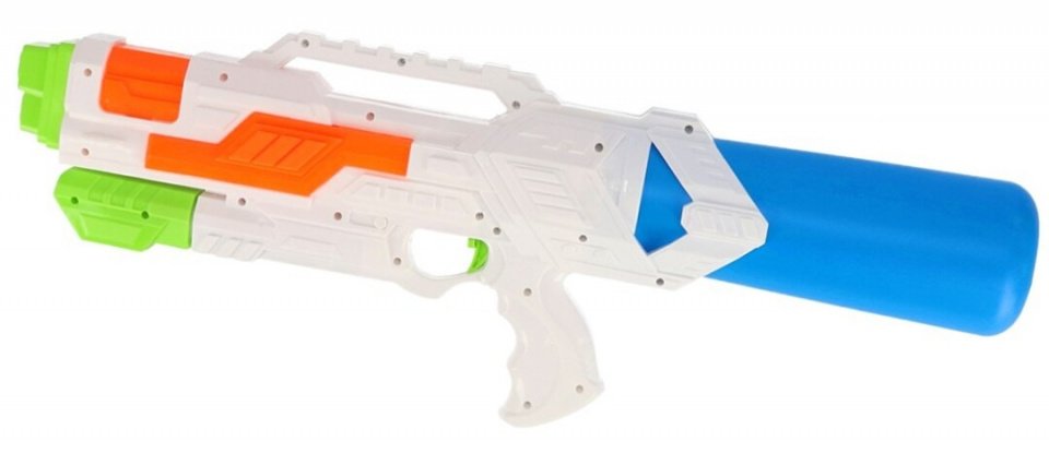 Het watergevecht kan beginnen! Vul de tank met water en zoek dekking. Met de pomp verhoog jij de druk waardoor het water eruit spuit. Als iemand niet oplet, krijgt hij een koude verrassing!