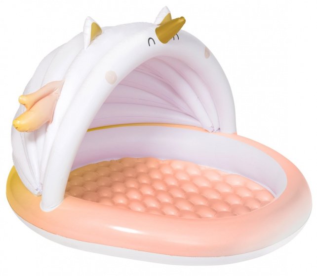 Met deze opblaasbare eenhoornzwembad worden warme zomerdagen nog leuker! Niet alleen een verfrissend bad, ook een gaaf, luxe bad met een fijne bodem. Ideaal voor in de tuin of mee te nemen naar het strand als handig extra badje op een onverwachte zomerse dag. Het bad is gemaakt van duurzaam ftalaatvrij PVC.