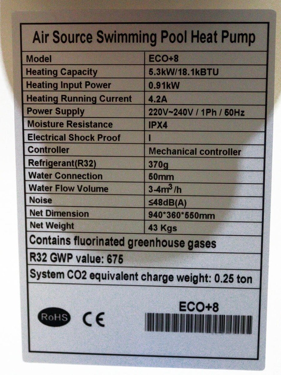 De beste methode op uw zwembadwater te verwarmen is met een warmtepomp. Kernmerken van deze ECO+ 8 zijn gebruiksvriendelijkheid, energiezuinig en vorstbestendig. De ECO+ warmtepomp houdt uw zwembad warm bij een omgevingstemperatuur van 10 tot 40 graden. De warmtepomp produceert opvallend weinig geluid door de hoge kwaliteit van de compressor en ventilator. Deze ECO+ 8 warmtepomp is geschikt voor zwembaden tot 30.000 liter.